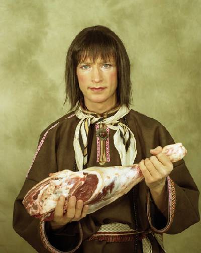By appearing as a woman, Ane Lan represents both genders simultaneously. In his work Woman of the World, he additionally transcends the boundaries of nationality and origin, touching upon the problems of both postcolonial and developed countries.