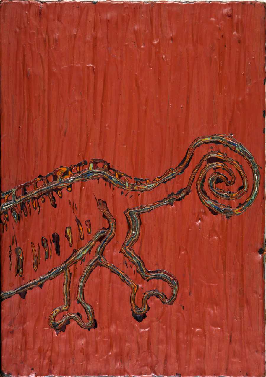 An analysis of painting. The etched figure reveals multicoloured layers. The object itself and its situation are treated in a condescending fashion. What matters most is to penetrate the painterly matter.