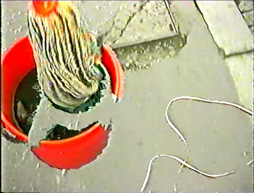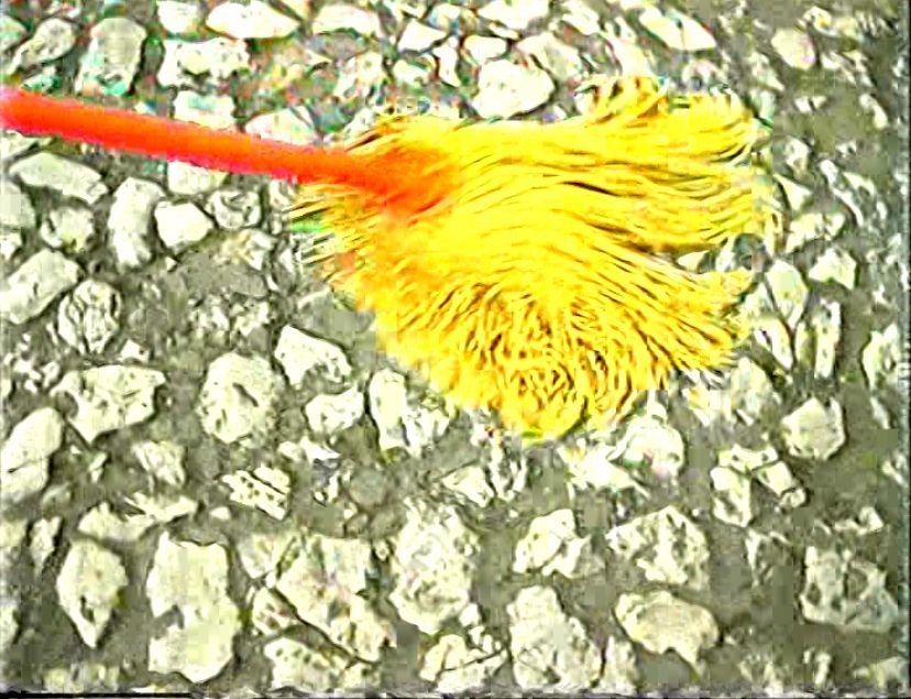 The work was produced for the artist’s individual exhibition in the Potocka Gallery in 1996. It consists of two images superimposed one on the other – the floor of the gallery being washed with a mop and a walk around Krakow. In this way the artist obtained a single view of the gallery space and its local surroundings. The work was inspired by a film which showed a woman sweeping Red Square in Moscow with a birch broom. This was a symbol of the Soviet purges.