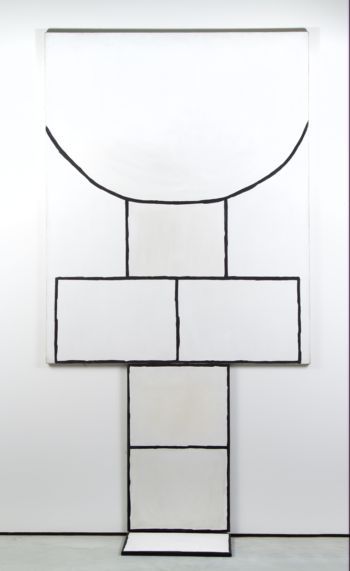 The Symbolic Absurd. The rules of the game are precisely defined. Any violation of their structure renders them useless or changes them into a symbol. Maria Stangret’s work replicates the layout of the childhood game of hopscotch: a horizontal drawing on which to make the appropriate series of jumps. The reward is reaching heaven, presented as a circle. For the game to be possible, the drawing must be flat. However, the artist has made part of the game vertical, rendering it obviously impossible. „In exchange for this” she attains a symbol of spiritual ascent.
