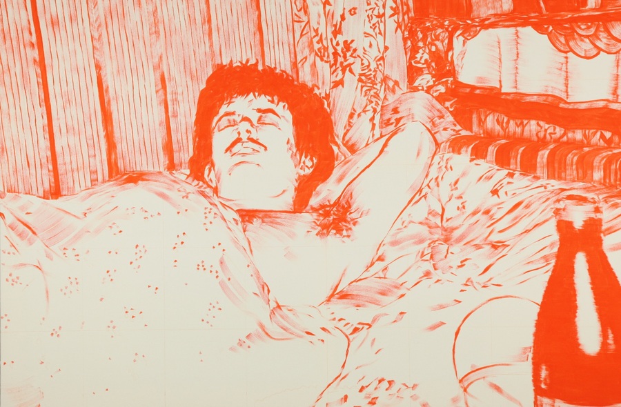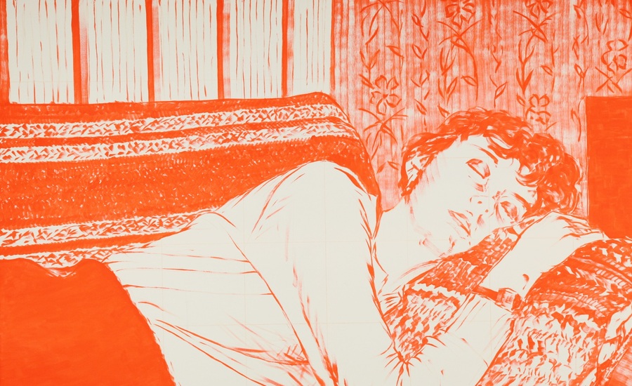 Images repainted from private photographs originating in Bytom. A free painterly play; the representation has been achieved through specific ‘interferences’ in the organisation of the brushstrokes. The result is an image of sleep, emphasised by monochromaticity