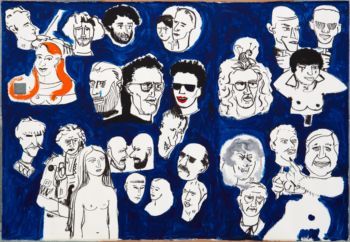 Portraits of individuals from the Krakow art world, as well as the music and theater scene, portrayed by the artist in his trade-mark style. Everything is infused with humor and irony, enhanced by the title, which hints at the local dialect. The artist lives in Warsaw; an ironic allusion to the traditional rivalry between the two cities provides an additional backdrop for the work.