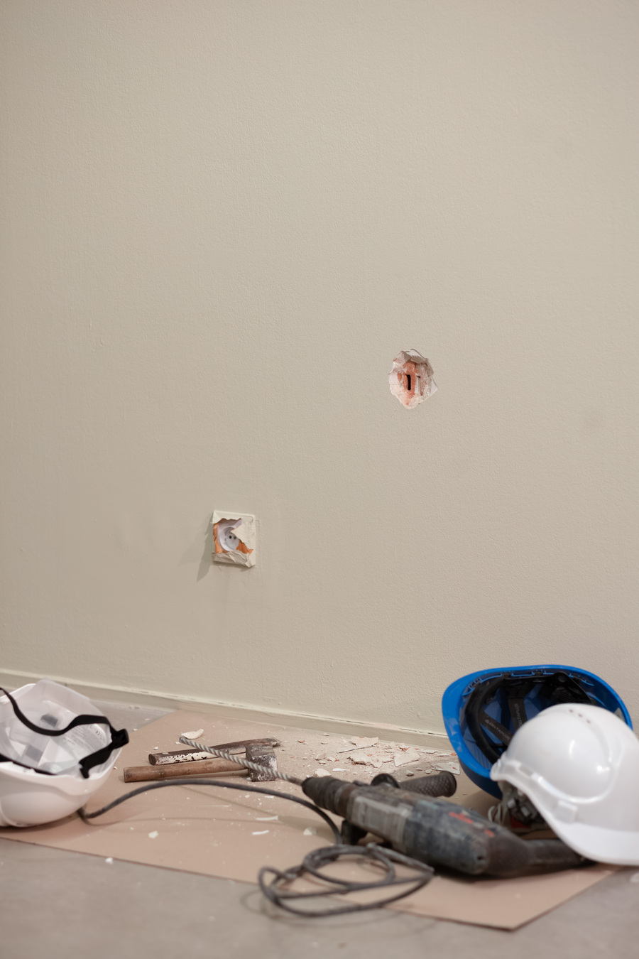 As part of their intervention at MOCAK, Marta Romankiv, Dominik Stanisławski and Łukasz Surowiec have formed an artistic collective, venturing into a work area of the museum that normally stays invisible, considered non-artistic – namely, renovation and construction work. For a month, the artists will be renovating the Beta Gallery, to prepare the space for planned exhibitions – turning the institution’s infrastructure itself into a field of artistic activity.