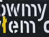 The template was taken from a shop in Sweden, from a shipping company. A long time ago I ordered an electric gun to paint, which was of no use; but in addition I got several sets of templates. At that time, I used them for my "comic paintings". This “anonymity" of a template seemed interesting to me, but the usage of it, after all, is also a signal ... After all, I started to like it… I was pondering over capitalization and “composing” the templates within my painting; captions are usually black, but sometimes, when I sit long enough over something, I also consider the usage of colors. The matter of color appears in the painting process.