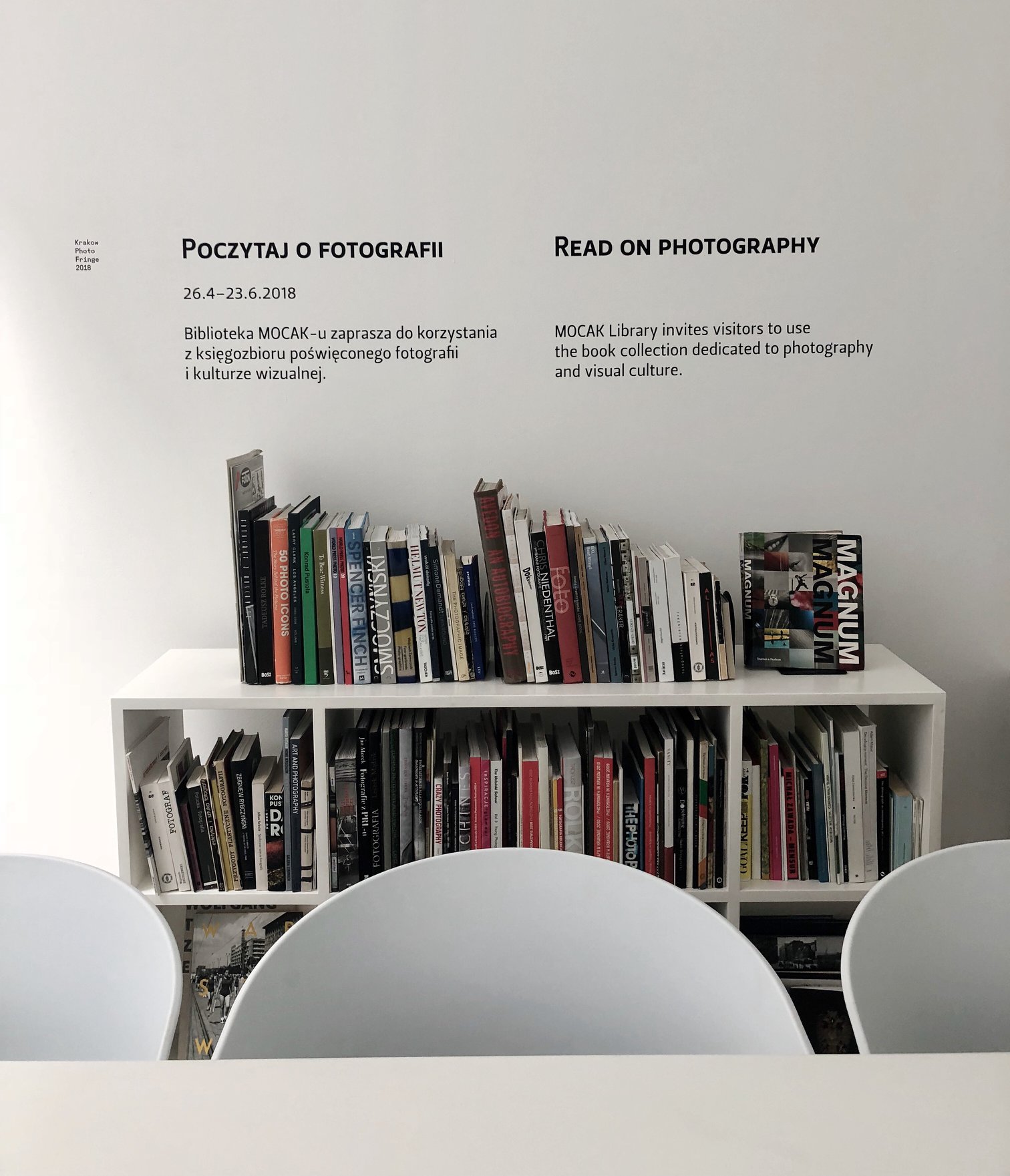 The Library offers albums, catalogues from both solo and collective exhibitions (domestic and international), as well as publications on the theory and history of visual arts. At the reading room, readers will also be able to find the materials accompanying this year’s edition of the Krakow Photomonth Festival. The Reading Room was founded as a combination of the collections of the MOCAK Library and the Foundation for Visual Arts.