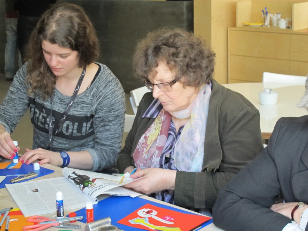 On 11th March 2014 MOCAK hosted another meeting from the Time For Art series. A free visit and workshops gathered senior citizines from several Krakow's associations and institutions. In the first part of the meeting the participants had an opportunity to see the Museum's temporary exhibitions: Władysław Hasior. The European Rauschenberg?, Rune Eraker's Uprooted and Wisława Szymborska's Collages. The first two triggered strong emotional reactions in the viewers and stirred a heated discussion. The works displayed in the last exhibition, on the other hand, provided inspiration for the workshops, in which the participants created their own picture postcards inspired by the poet's "postcards".