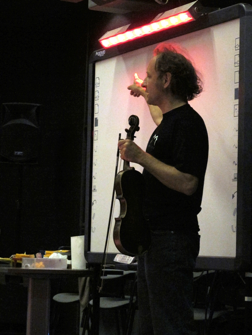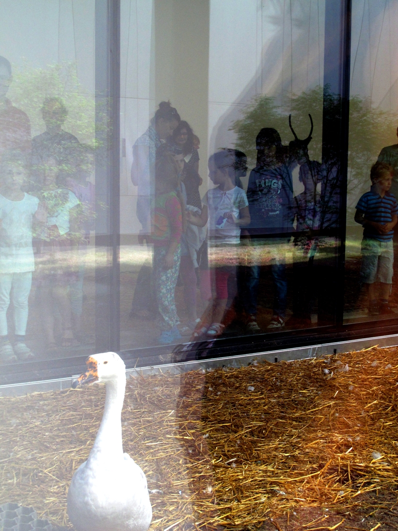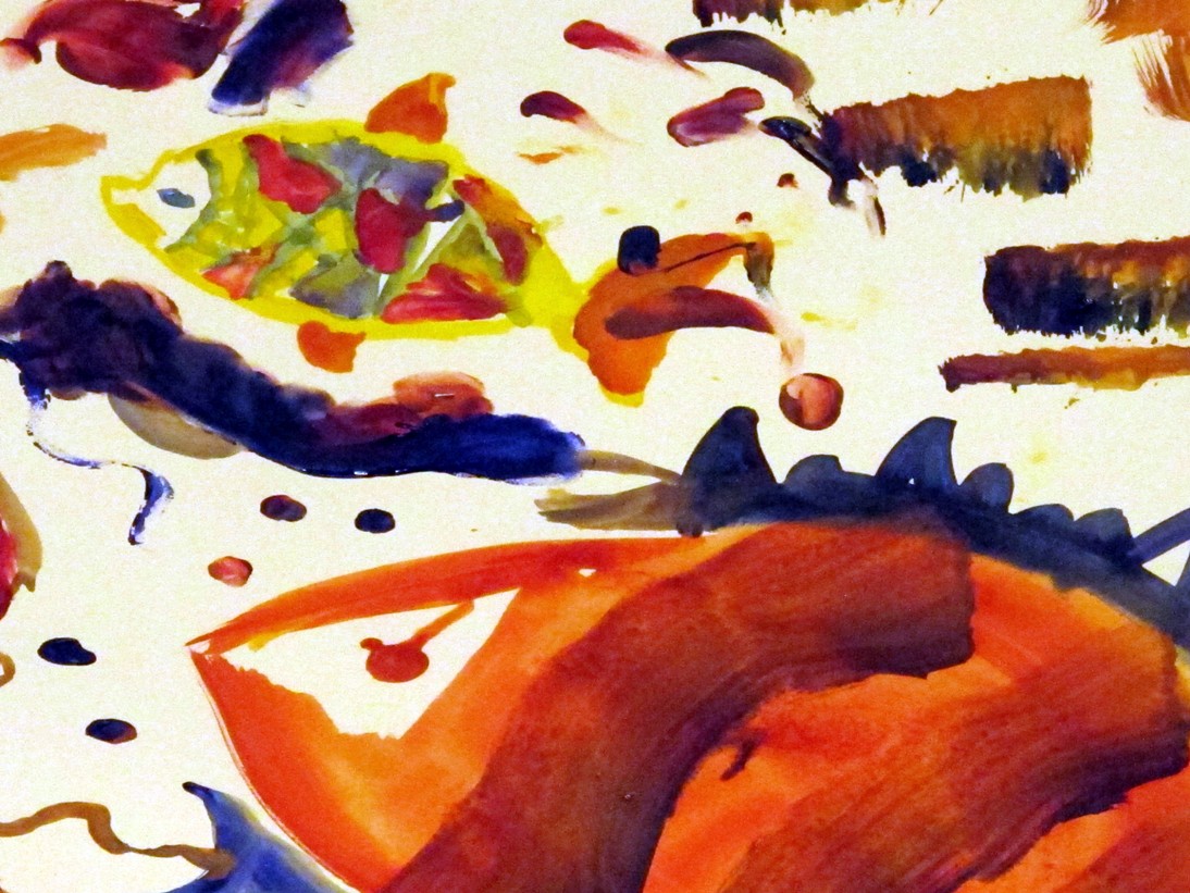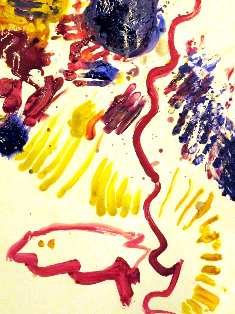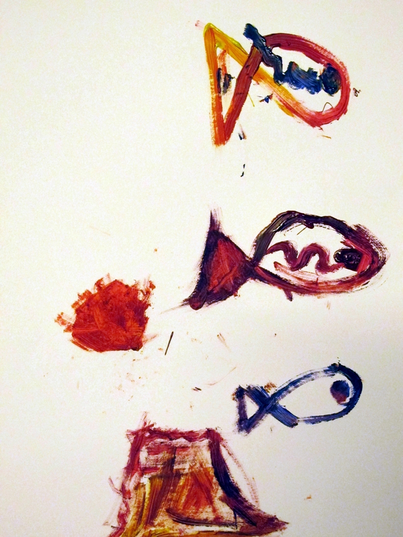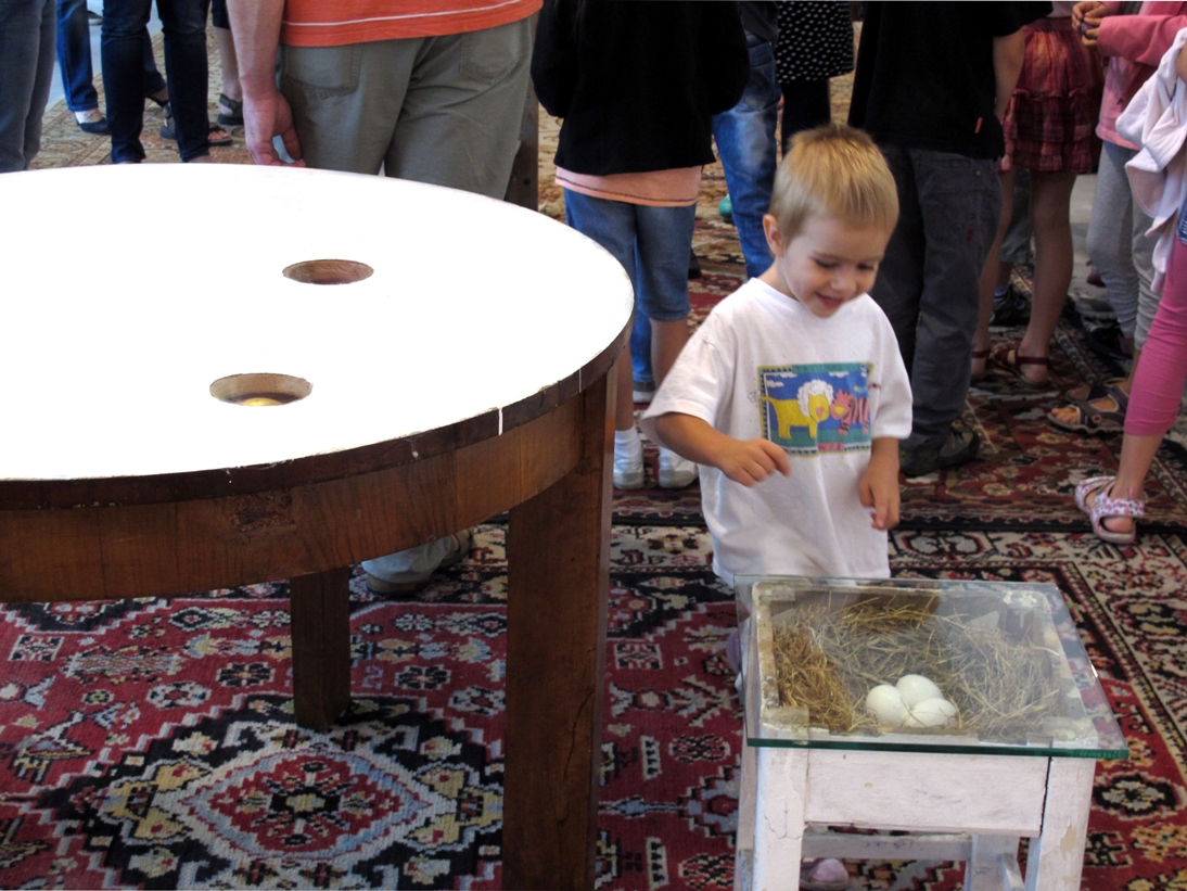 On Saturday 24 August 2013 there took place a workshop for children with the artist Piotr Lutyński. The participants familiarised themselves with two exhibitions: Economics in Art and Territory. After viewing the first one of these, the artist invited the group to the Alfa Gallery at MOCAK, which for the duration of the exhibition Territory had become a ‘room inhabited by a stag’. In the Gallery the children viewed the installation and the paintings that Piotr Lutyński had painted for animals. Next, with colourful illumination and under the artist’s guidance the children created paintings of sea creatures, their colours transforming every time the colour of the lights changed. To culminate the session, the artful net of Piotr Lutyński’s music caught a colourful shoal of fish and other sea creatures.